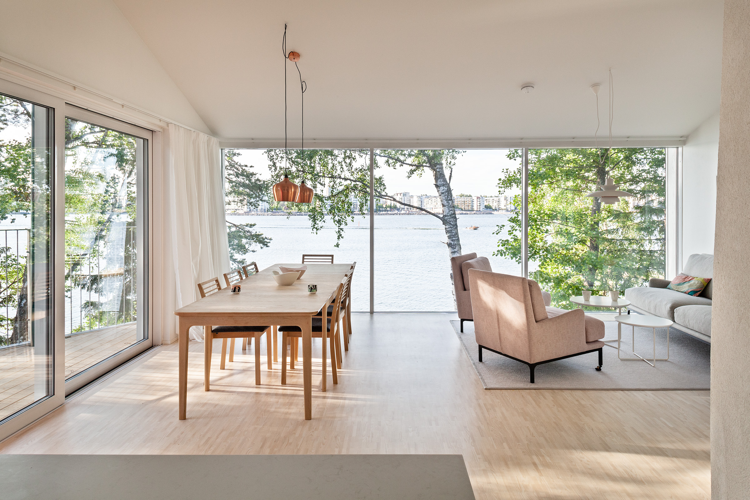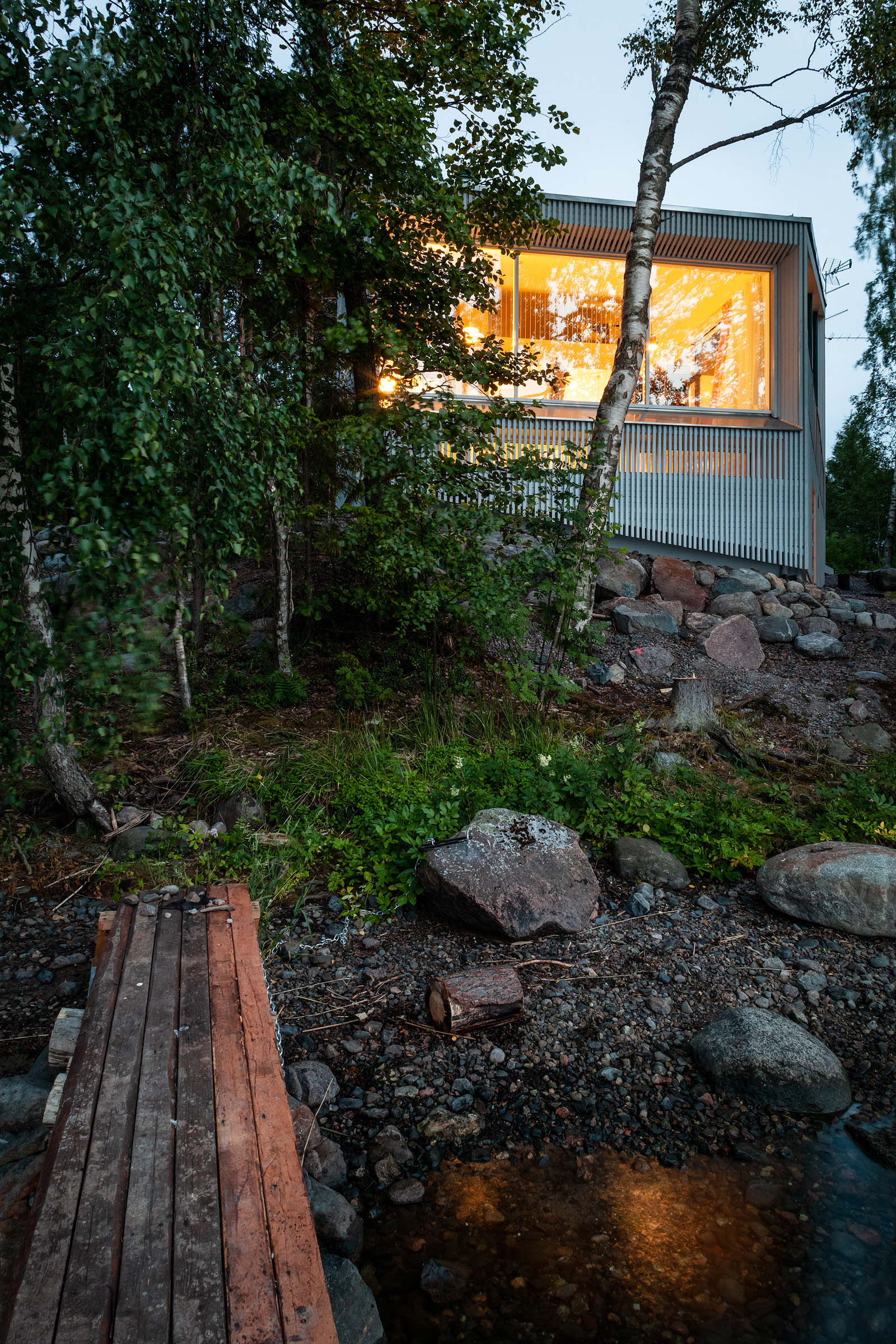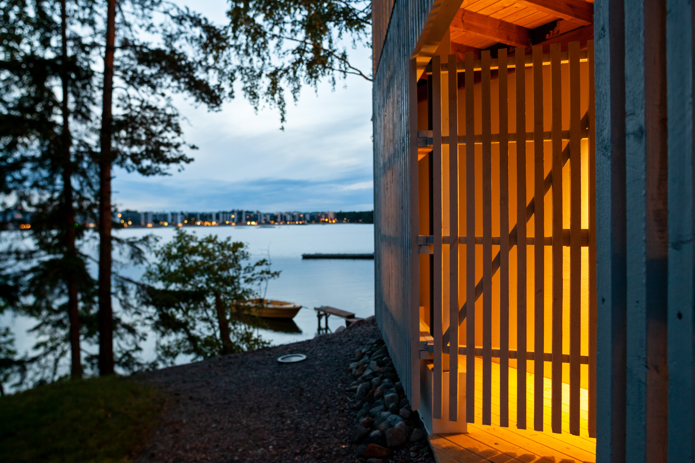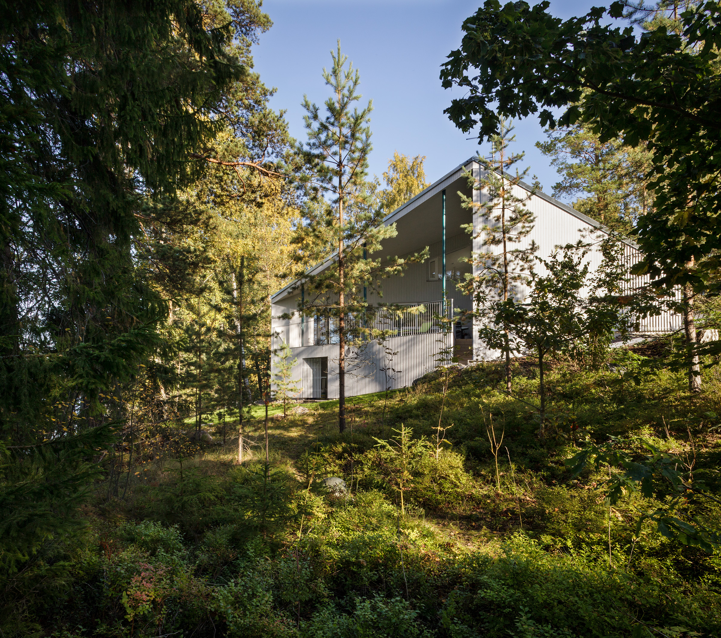 Rakennus sijoittuu rinteeseen ja sen ympärillä rinne ja ranta on säilytetty mahdollisimman luonnonmukaisina. Olemassa olevat puut suojattiin rakentamisen ajaksi ja mahdollisimman paljon kasvillisuutta jätettiin rakennuksen ympärille luomaan sekä näkö- että auringonsuojaa.